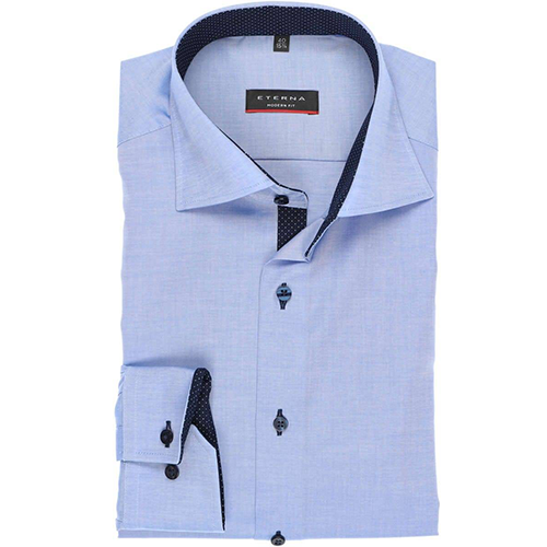 The Eterna Modern Fit Shirt in mid-blue is a quintessential addition to any man`s wardrobe. Its modern fit strikes the perfect balance between comfort and style, making it suitable for both professional and casual settings.